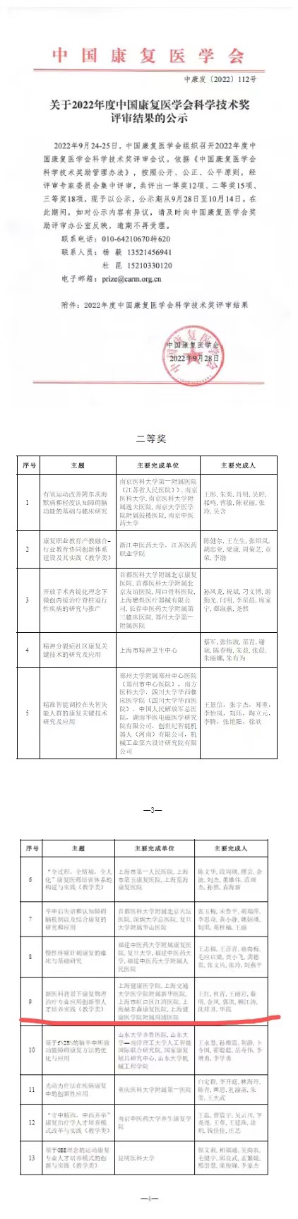 此次,由我校王红副教授牵头申报的项目《新医科背景下康复物理治疗专业应用创新型人才培养实践》荣获中国康复医学会科学技术奖二等奖,取得了历史性的突破。学院将以此为契机,进一步贯彻创新发展理念,聚焦现代康复医学科技前沿,加强学术研究和科技创新,不断增强自主创新能力,为推进国家康复医学事业发展、助力健康中国建设做出新的更大贡献。(康复学院)