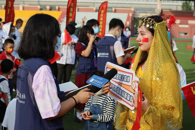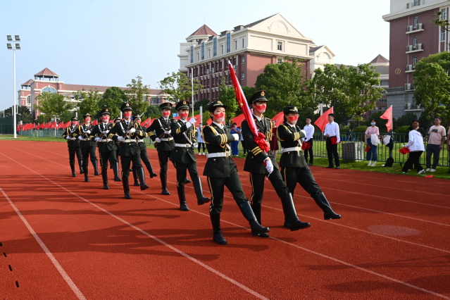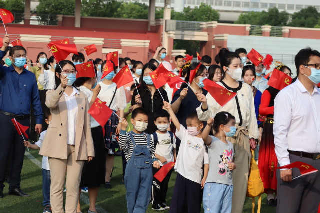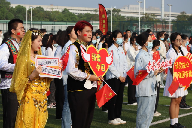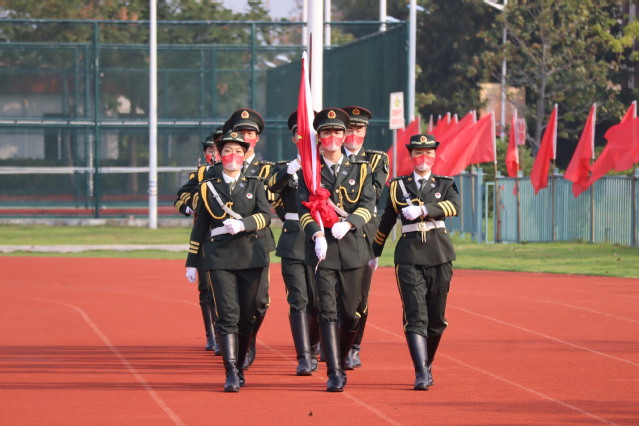 最后,全体师生一起“歌唱我们亲爱的祖国,从今走向富强”,全场师生们挥舞手中的国旗,共同唱响《歌唱祖国》,唱出每一个中国人最朴素、最深沉的爱国情、报国志。