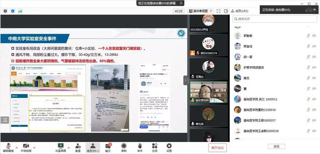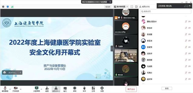为使全校师生牢固树立科学实验室安全观念,不断提高广大师生的安全意识和对安全风险的认知水平,资产与设备管理处于10月13日至11月13日期间,举办以“责任在我心,安全伴我行”为主题的首届实验室安全文化月活动。10月13日上午,实验室安全文化月线上开幕式顺利举行,拉开了实验室安全文化月的序幕,学校各学院(部、中心)实验室安全管理负责人及师生代表约190余人参加了此次开幕式。