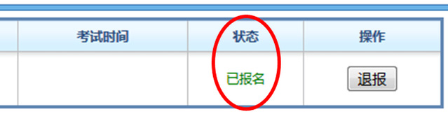 6.在“状态”栏中显示已报名,则为报名成功,可截图留作凭证(需截到学号姓名及已报名三个要点)。