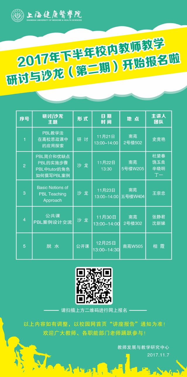 2017年下半年校内教师教学研讨与沙龙(第二期)开始报名啦