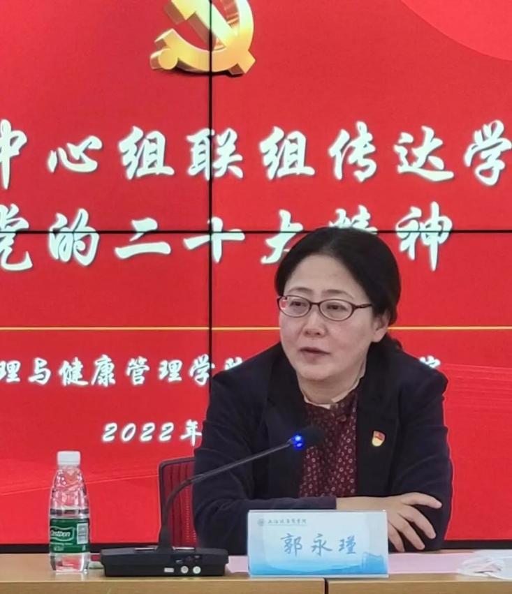 1028日下午,护理与健康管理学院和临床医学院二级中心组联组举行了以“踔厉奋进新征程 立德树人促健康”为主题的学习贯彻党的二十大精神座谈会。校党委书记郭永瑾,校党委副书记、副校长唐红梅与会交流领学,党委常委、宣传部部长、教师工作部部长李兆伟,护理与健康管理学院、临床医学院二级中心组成员以及师生党员代表参会学习,此次座谈会由护理与健康管理学院党总支书记郭戎静主持。座谈会通过线上和线下相结合的形式开展。