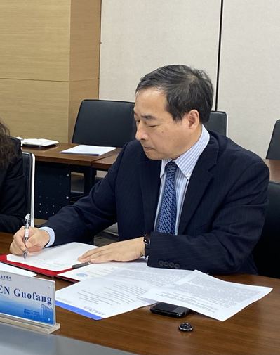 10月28日下午,我校与北马其顿圣保罗信息科技大学(UIST)线上召开校际合作工作推进会。会上副校长沈国芳代表学校与Ivan Bimbilovski校长签署备忘录。北马其顿圣保罗信息科技大学名誉校长Ninoslav Marina、校董会主席Atanas Hristov、副校长Ustijana Rechkoska Shikoska及职能部门负责人、我校科技处处长莫国民、协同科研中心副主任陈冰、研究生管理办公室主任胡霞敏、5G+智慧医疗创新实验室负责人周亮出席会议。会议由国际交流处处长薛文隽主持。