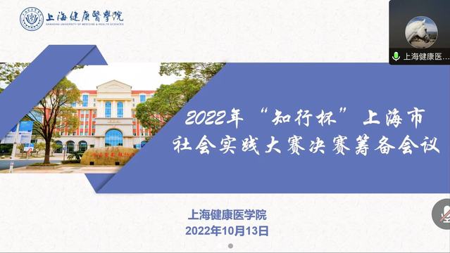 10月29日,由团市委、市委宣传部、市精神文明办、市人大社建委、市政协社法委、市教卫工作党委、市教委、市学联联合主办的2022年“知行杯”上海市大学生社会实践大赛决赛在上海健康医学院成功举办。决赛采用线上答辩、线下评审的形式进行,来自各主办单位、相关委办局、媒体等单位的专家评审团分主题对各项目开展集中评审,各参赛高校实践团队成员在云端开展网络视频答辩。校党委副书记、副校长唐红梅出席本次活动并致辞,团市委学校工作部部长、市学联秘书长任浡介绍大赛基本情况及评审安排。