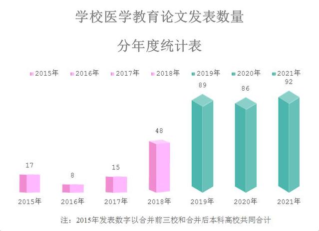 中华医学会医学教育分会从2008年起每年公布我国医药院校年度医学教育论文发表数量排名情况,中国高等教育学会医学教育专业委员会从2013年起共同参加此项活动。2021年,我国共有18种正式出版的医药教育类学术期刊,即《中华医学教育杂志》《中国高等医学教育》《医学教育研究与实践》《中华医学教育探索杂志》《基础医学教育》《中医教育》《药学教育》《卫生职业教育》《继续医学教育》《中华护理教育》《浙江医学教育》《中国继续医学教育》《中国中医药现代远程教育》《中国医学教育技术》《医学教育管理》《中国毕业后医学教育》《中国医学伦理学》和《中国医学人文》;同时,《医学与哲学(人文社会医学版)》《医学研究与教育》《全科医学临床与教育》开设有医学教育类专栏或发表有医学教育类文章。2021年,这些期刊上共发表了6631篇医学教育论文。