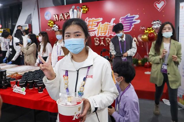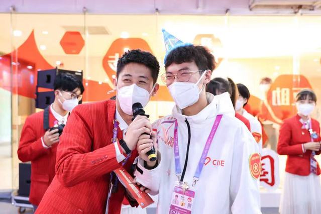 护理与健康管理学院18级健康服务与管理(本科)班的郭倩倩同学,作为本次进博会幸运儿“小叶子”有幸参与了一次奇妙而又难忘的集体生日。“今天是我21岁的生日,我20岁的最后一天,和奔三的第一天都献给进博会了,”郭倩倩同学笑着说,“希望进博会可以越办越好,我也会更加认真努力地完成好自己本职工作,为进博贡献出自己的一份力量。”