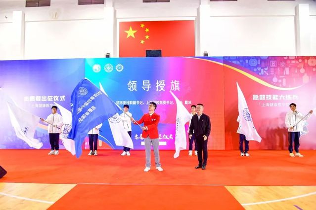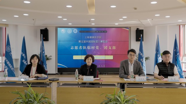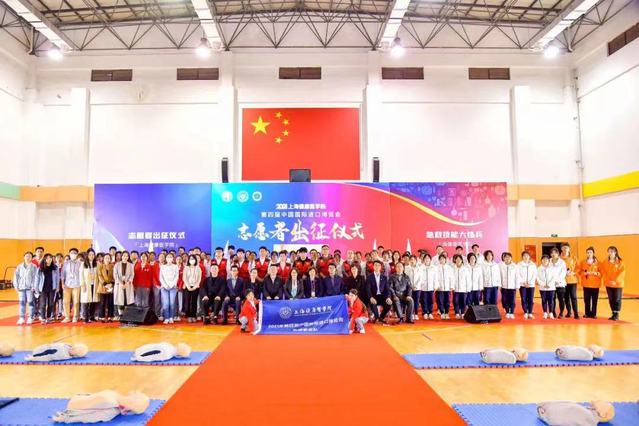 10月28日下午,上海健康医学院第四届中国国际进口博览会志愿者出征仪式暨急救技能大练兵在南苑行健楼举行。团市委挂职副书记、上海团校党委书记、校长戴冰,上海健康医学院党委书记郭永瑾,上海健康医学院党委副书记、副校长唐红梅,团市委社会工作部部长章璐、浦东团区委副书记张志强、浦东卫生与健康委员会团委书记廖兴斌出席仪式。