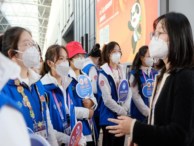 再遇进博,“健康小叶子”们投身于食品药品监督管理组、控烟劝阻组、地铁秩序维护组、运营统筹组等重要工作岗位。