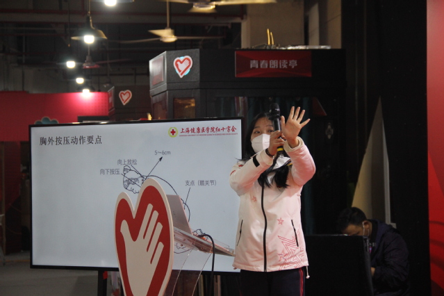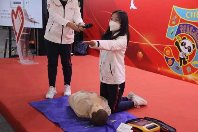 期间,上海健康医学院红十字会学生分会和“健康小叶子”们利用进博会“小叶子之家”这一平台,从CPR、AED使用技能,气道异物梗阻的处置方法和紧急疏散知识要点三方面入手,向各兄弟高校科普急救知识,让更多同学了解急救技能技巧。