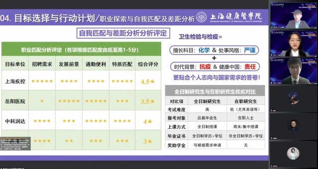 上海健康医学院学工部部长吕晓丽在致辞中指出,职业规划对大学生生涯发展和成长成才具有深远的意义,我校也将大学生职业生涯发展教育作为人才培养的“重要一环”,希望能够帮助健康学子系统地了解自己,通过比赛进一步提升大学生职业规划意识,提高学生就业核心竞争力、在职业生涯规划道路上脚踏实地,用奋斗逐梦新时代。