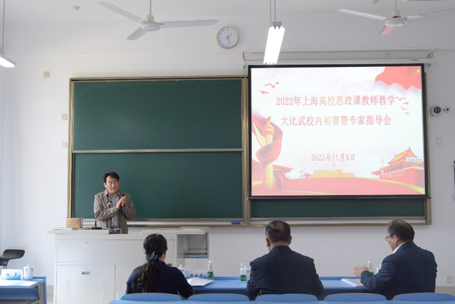 为了深化中共中央关于思政课改革创新的相关意见以及上海市教委关于2022年度上海高校思想政治理论课质量提升行动的通知要求,扎实做好党的二十大精神“三进”工作,特别是习近平新时代中国特色社会主义思想进课堂、进思想、进头脑,进一步提升马克思主义学院思政课教学质量和育人水平,增强思政课思想性、理论性、亲和力以及针对性,从而激发思政课教师讲好思政课的积极性,真正地做到将党的二十大精神“讲深、讲活、讲透”。马克思主义学院于11月8、9日下午分两场举行2022年上海高校思政课教师教学大比武校内初赛暨专家指导会。马克思主义学院院长孙玉良、党总支书记金东英、教学副院长曹月柱以及参赛教师出席活动,会议由曹月柱主持。