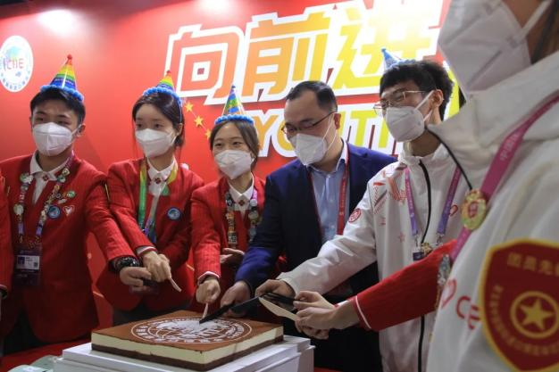 11月08日,上海健康医学院第五届中国国际进口博览会志愿者临时党、团支部学习二十大专题组织生活会顺利召开。校党委副书记、副校长唐红梅带领志愿者们学习了习近平总书记在第五届中国国际进口博览会开幕式上的重要讲话和党的二十大精神,并与“寿星小叶子”郭星龙同学“云”切蛋糕,送上真挚的祝福。
