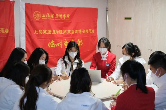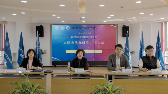 11月02日,上海健康医学院第五届进博会带队老师和全体学生志愿者,开展临时党、团支部第一次组织生活会。