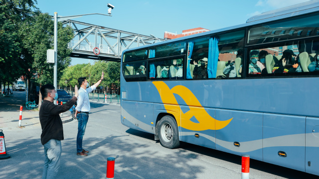 10月20日、10月23日,上海健康医学院第五届进博会志愿者分两批入住校外酒店接受闭环管理。