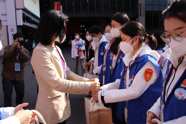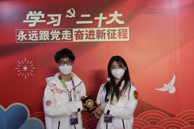 11月09日,“健康小叶子”代表参加“礼赞二十大,永远跟党走”上海立信会计金融学院第五届进博会志愿者临时团支部团日活动。