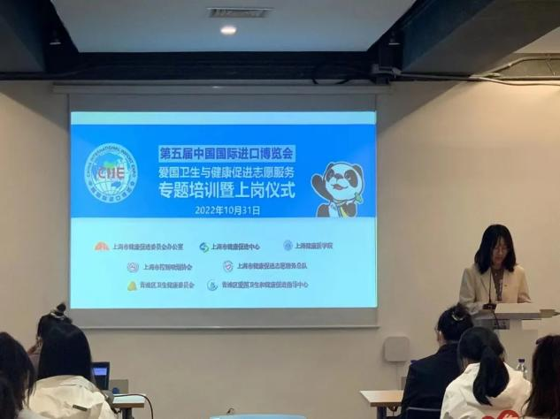 10月31日,第五届中国国际进口博览会爱国卫生与健康促进志愿者专题培训暨上岗仪式举行。
