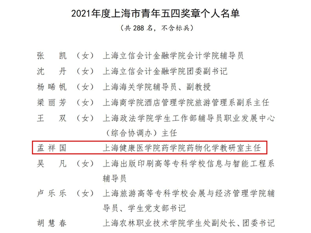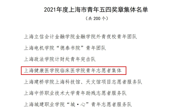 我校孟祥国老师荣获上海市青年五四奖章个人,上海健康医学院临床医学院青年志愿者集体荣获上海市青年五四奖章集体。