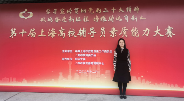 以“学习宣传贯彻党的二十大精神,砥砺奋进新征程,培根铸魂育新人”为主题的第十届上海高校辅导员素质能力大赛决赛,近期在东华大学举行,我校辅导员郭子叶与来自上海高校的20位辅导员同台竞技,她以《微笑天使眼中的中国式现代化》为题开展理论宣讲,学工部部长吕晓丽和各学院辅导员代表共同在线观看活动直播。最终,医学技术学院辅导员郭子叶获三等奖,药学院辅导员钟旭芬获优胜奖。此外,在上海高校辅导员主题班会展示活动中,我校两位年轻辅导员医疗器械学院刘一丹和护理与健康管理学院刘源璞双双闯入前20名。