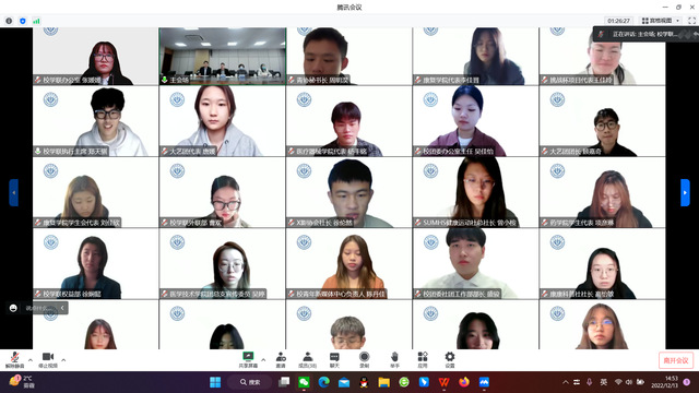 12月13日,学校召开学生思政课和学生座谈会。校长吴韬,校党委副书记、副校长唐红梅出席。学生工作部、校团委等职能部门负责人和全校各级学生代表参加了本次活动。