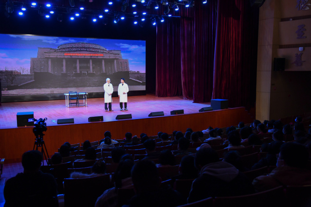 2月27日,由上海中医药大学和我校共同承办,上海中医药大学卿园剧社参演的师生版话剧《裘沛然》在我校北苑德馨楼400人报告厅隆重上演,上海中医药大学与我校师生代表400余人观看演出。本次专场演出,旨在弘扬医者仁心、激励广大青年医学生担当作为、建功立业,在中华民族伟大复兴道路上争当先锋者,谱写新篇章。