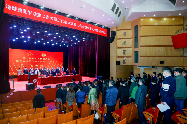 3月3日下午,上海健康医学院第二届教代会暨工代会第五次会议闭幕会在北苑1号楼400人报告厅隆重举行。校党委书记郭永瑾,党委副书记、校长吴韬,党委副书记、纪委书记李明磊,党委副书记于莹,副校长陈小冰、沈国芳、原党委书记郑沈芳以及91名代表出席会议。列席大会的有部分职能部门负责人、民主党派代表等。闭幕会由于莹主持。
