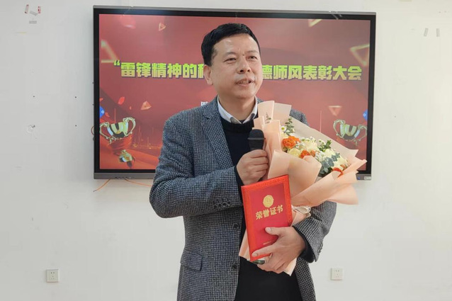 随后,陈凤贞副院长代表学院党总支宣读了《关于授予张利能老师“雷锋精神的种子”荣誉称号的表彰决定》。学院领导班子共同为张利能颁发了“雷锋精神的种子”荣誉证书。
