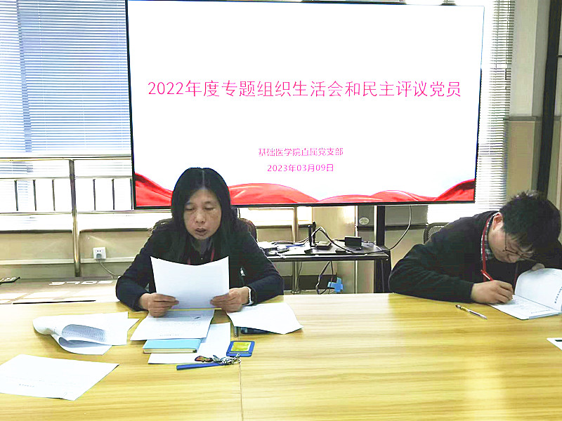 3月9日下午,基础医学院直属党支部召开了2022年度组织生活会并开展民主评议党员。会议由直属党支部书记程伟主持,全体党员参加会议。