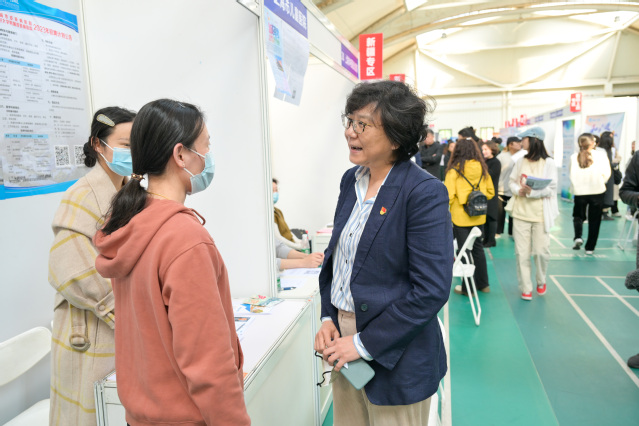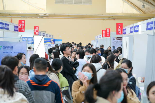 招聘会现场,毕业生们手持多份简历,积极与用人单位交流,了解单位的发展前景、岗位设置、薪酬待遇及入职后发展规划等,并向用人单位充分展现自己的专业学识和综合素质。据不完全统计,大健康医疗产业专场累计本专科生投递简历2718份,单位拟录用1480人。