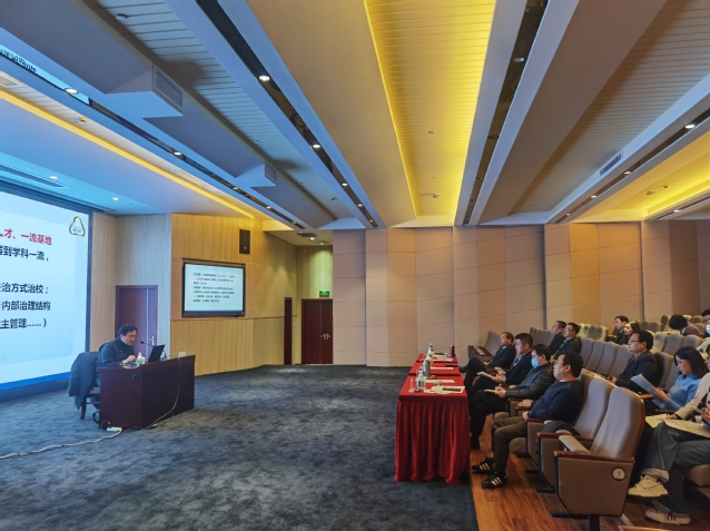 蒋红从国家“双一流”建设的总体背景、上海市贯彻落实国家“双一流”建设的主要做法以及个人对“双一流”建设的相关思考三个方面作报告。蒋红指出,高水平地方高校建设是实现“双一流”建设的重要组成,“双一流”建设的理念、思想、做法适用于高水平地方高校建设。蒋红强调,本市新一轮“双一流”建设方案(2021-2025)以高峰高原学科建设计划、高水平地方高校建设计划为重要抓手,以高校创新策源能力提升计划为重要支撑。高校要在聚焦特色发展的基础上,统筹协调全面发展,提升学校治理能力与水平,完善学校内部治理体系。