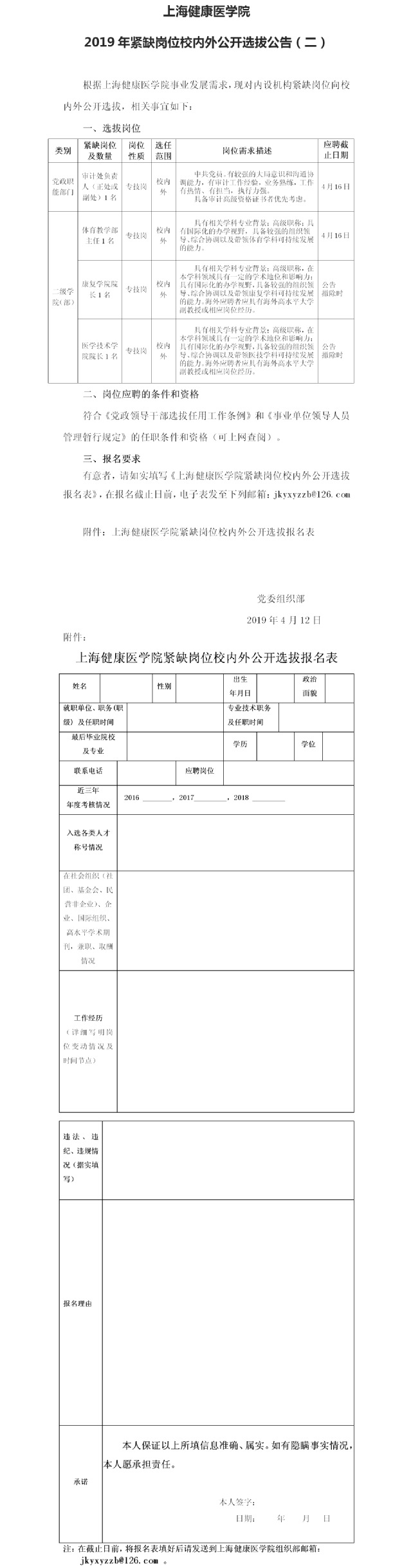 上海健康医学院2019年紧缺岗位校内外公开选拔公告(二)