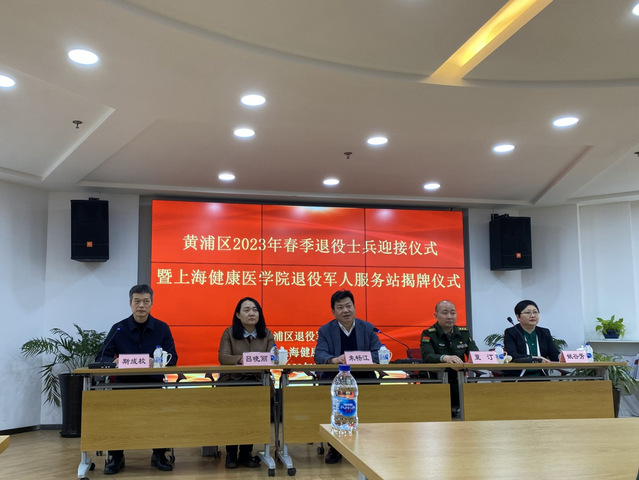 3月30日下午,黄浦区退役军人事务局和我校在北苑1号楼500室联合举行2023年春季退役士兵迎接仪式暨上海健康医学院退役军人服务站揭牌仪式。黄浦区退役军人事务局党组书记、局长朱畅江、副局长斯成校、区人武部上校副部长夏汀、我校武装部部长吕晓丽、继续教育学院院长姚谷芳、2023年春季退役士兵和历年退役士兵代表出席仪式,仪式由黄浦区退役军人事务局副局长斯成校主持。