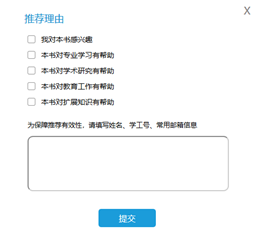 平台支持读者荐购,读者可以向图书馆推荐感兴趣的图书,并填写推荐理由。