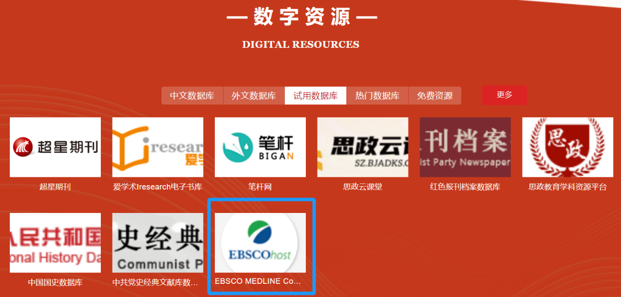 访问方式: 图书馆主页——数字资源——试用数据库——EBSCO-MEDLINE complete(试用仅限校内,校园网IP范围内无限次访问)