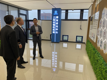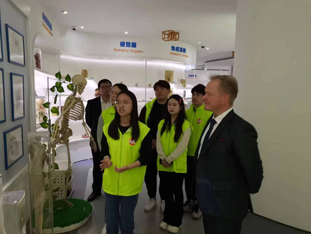 Dr.Jan-Markus Holm来访期间,参访了我校康复学院、医学实践教学中心、现代护理实训中心、基础医学院互动实训中心等教学实践基地,与我校师生交流,适时提问,了解各学院人才培养工作概况,尤其对我校国际合作与开展、世界技能大赛健康与社会照护项目展现的国际专业水准深表赞赏。