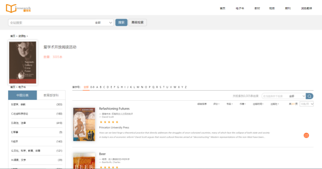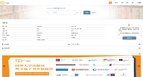 机构IP内直接访问图书馆——试用数据库——爱学术Iresearch电子书库
