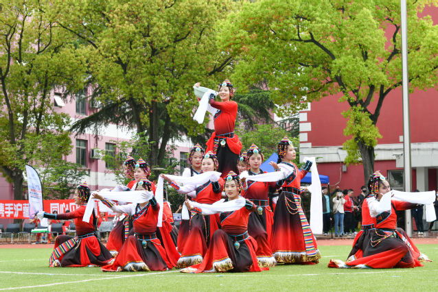 接着钱艳宣布活动开始,校艺术团民族舞蹈队为大家献上精彩的开场舞。