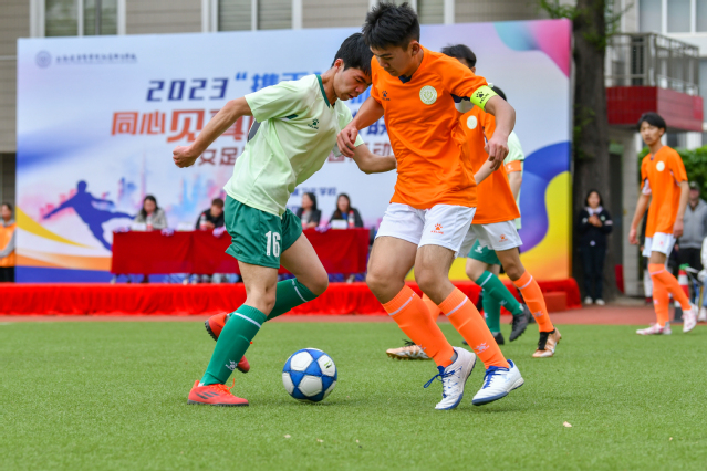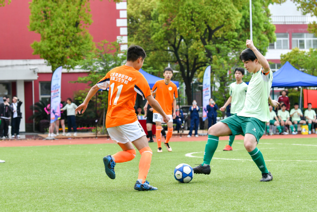 唐红梅为揭幕战开球。随着裁判的一声哨响,比赛正式拉开帷幕。比赛分上下半场进行,上半场由上海班男生组成的“绿茵逐梦”队对阵云南班男生组成的“七彩云滇”队,下半场由上海班女生组成的“沪小囡”队对阵西藏班女生组成的“藏木兰”队。比赛中队员配合默契,足球在球员脚下不断传递,赛场上每位球员尽情挥洒着汗水,发扬团结、友谊、进步、参与、梦想的拼搏精神,赛场下啦啦队队员和全场观众也都为球员们摇旗呐喊,共同享受足球运动的魅力与欢乐。经过一个多小时的激烈角逐,“绿茵逐梦”队和“沪小囡”队取得了本场比赛的胜利。最后,领导和嘉宾为全体球员颁发了纪念奖牌并合影留念。