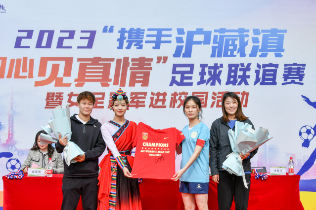活动伊始,球员代表即向刘洁茹、缪斯雯献上鲜花,两位老师也将一件由他们亲笔签名的2022年女足亚洲杯冠军纪念衫赠送给全校师生,纪念衫上还有女足国门赵丽娜老师的签名。