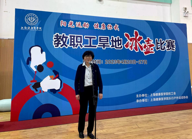 在全校深入开展学习贯彻习近平新时代中国特色社会主义思想主题教育之际,4月20日下午,由校工会和体育教学部联合主办,教职工乐行协会承办的“阳光运动 健康你我”教职工旱地冰壶比赛在南苑体育馆火热开幕,各部门工会共计23支队伍近250人参加,校党委副书记、工会主席于莹、副校长沈国芳出席,于莹致开幕词,沈国芳为比赛开壶。