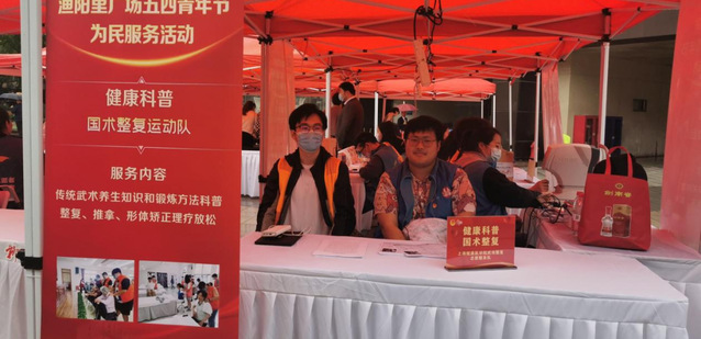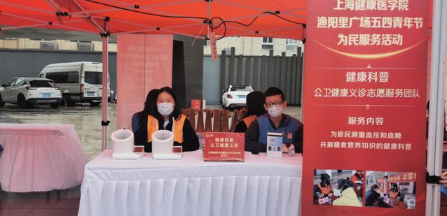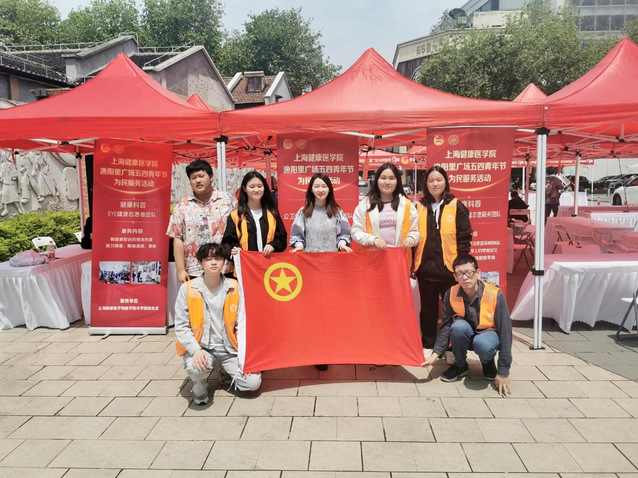 为深入学习贯彻党的二十大精神,进一步继承和发扬“五四”精神,上海健康医学院校团委积极响应国家《健康中国行动(2019-2030年)》文件精神,迎接第三届上海市“学生劳动教育宣传周”活动。校团委特组织健康与公共卫生学院团总支、医学技术学院团总支和国术整复运动队的“健康小橘子”们投身五四青年节渔阳里广场为民服务志愿者活动。青春为民服务是此次主题教育中深化“我为群众办实事”实践活动的具体体现,健康青年们以志愿服务为载体,紧扣红色脉搏,回应市民需求,用朝气谱写志愿服务新篇章。以志愿之名,赴青春之约,答时代之卷。