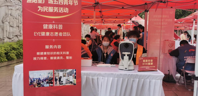 EYE健康志愿者团队负责为市民进行视力筛查、测量视力、眼镜清洗,为市民进行眼健康知识的相关科普,解答用眼问题。