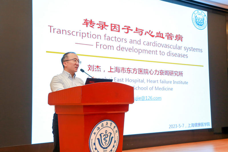 本次活动邀请到上海理工大学丁德锐教授和同济大学附属东方医院刘杰研究员作主旨报告。丁德锐在研究生培养领域经验丰富,他从自身工作经验指导同学们如何在研究生阶段高效开展科学研究工作。刘杰则在前沿研究的角度和同学们分享自己在转录因子调控干预心血管病防治的研究进展。