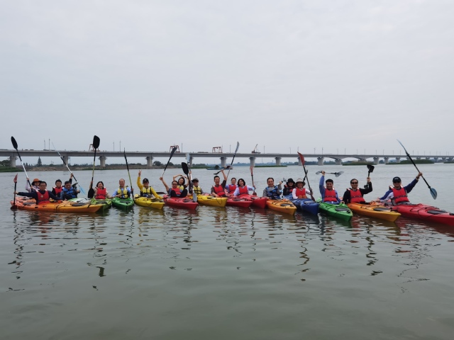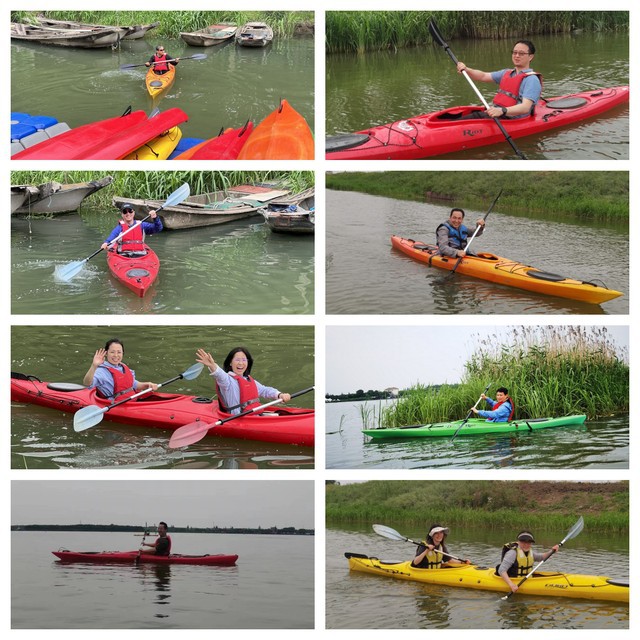 人间五月天,小荷初嫩绿。鲜花盛开,草木茂盛,一切都是如此欣欣向荣!荡漾碧波,观赏美景,欢乐畅谈,悠哉乐哉.....在淀山湖宽广的水面上,老师们体验着皮划艇水中畅游的快感。刚开始,时常会有老师因把握不了航向而“误入芦苇深处”,响彻云霄的欢笑声一次次“惊起一滩鸥鹭”。熟悉划船要领后,老师们悠闲地徜徉湖面,三三两两的小艇并排行驶着,他们一边闲聊一边欣赏两岸如画的美景。真是“舟行碧波上,人在画中游”啊!