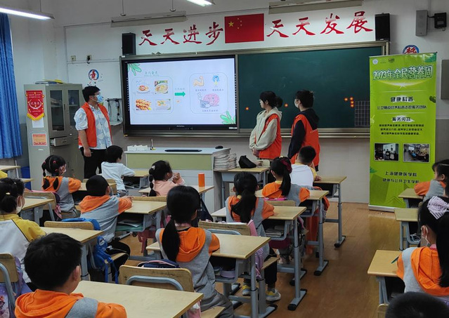 为普及营养健康知识,向儿童传递合理膳食理念,健康与公共卫生学院学工党支部开展一支部一实事,组建健康科普•膳食营养志愿服务队于5月18日下午前往康城学校开展营养周系列活动之“全民营养周进课堂”,为儿童提供有关营养健康的重要知识和实用技能。
