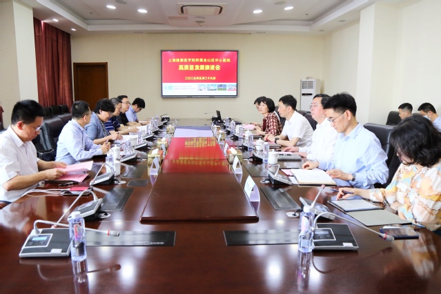 附属金山区中心医院高质量发展推进会由上海健康医学院领导和相关处室负责人、金山区卫健委领导及医院党政领导和相关职能科室负责人参加。