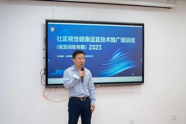 上海健康医学院继续教育学院副院长孙海涛致辞中提到,眼健康是国民健康的重要组成部分,涉及全年龄段人群的全生命周期,近年来各年龄段人群视觉健康问题的增多,是涉及民生的重大公共卫生问题,而眼视光学技术对于视觉健康水平的提升有着不可忽视的重要作用。本次培训班让视觉训练技术在社区中的推广迈出了坚实的一步,在基层医疗卫生中发挥更大的作用。