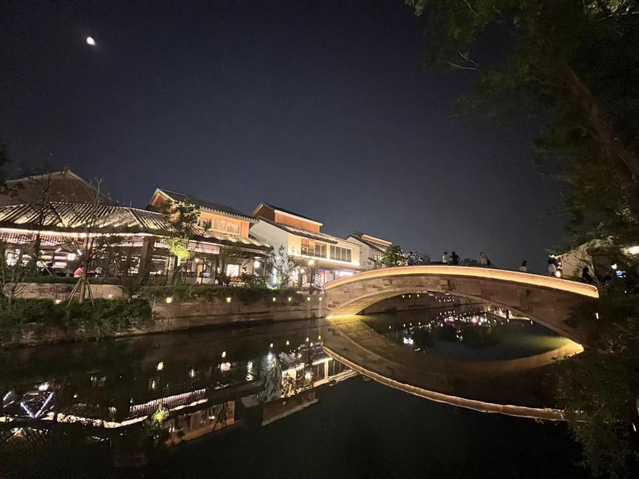 接下来,老师们驱车领略城市发展的魅力。首先来到上海首批完工“城中村”改造项目之一、长三角一体化示范区新消费示范项目——“蟠龙天地”。作为上海32个历史风貌保护区之一,江南古镇蟠龙镇的历史最早可追溯至隋朝,距今已经千年兴替,在城市化浪潮中,古镇逐渐衰败,成为“城中村”。蟠龙天地保留了蟠龙镇完整水系、桥文化以及十字街的空间肌理,将青浦文物保护建筑和众多老建筑修旧如旧,是一个铸就江南水乡历史记忆与现代生活交织的风情休闲区。