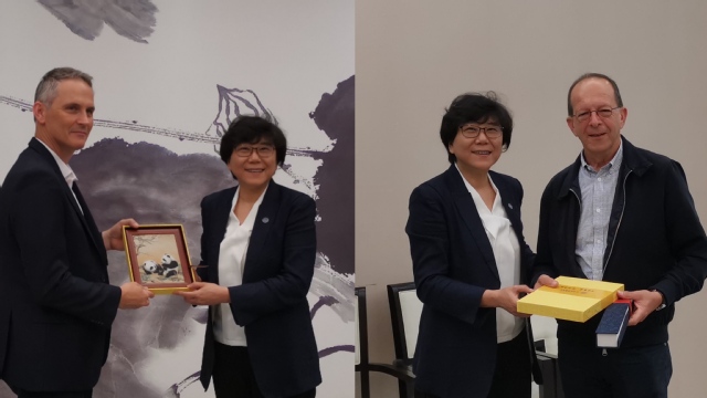 学校党委副书记于莹参加会见,并赠送纪念品。