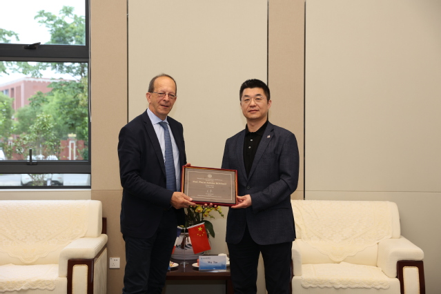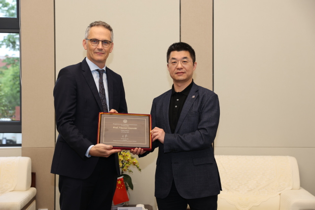 近日,法国蒙彼利埃大学药学院院长、法国药学科学院通讯院士Vincent Lisowski,及法国药学科学院院士Pierre-Antoine Bonnet来访我校,并受聘为我校特聘客座教授。校长吴韬代表学校向两位院士颁发聘书,国际交流处、药学院、临床医学院负责人共同出席仪式。
