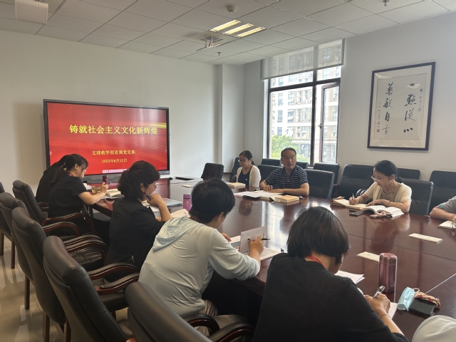 6月15日下午,文理教学部直属党支部在南苑2号楼302室召开主题教育读书班暨党员学习会。学习《习近平新时代中国特色社会主义思想专题摘编》第十个专题“铸就社会主义文化新辉煌”,会议由文理教学部直属党支部书记、教学部主任耿铭主持。